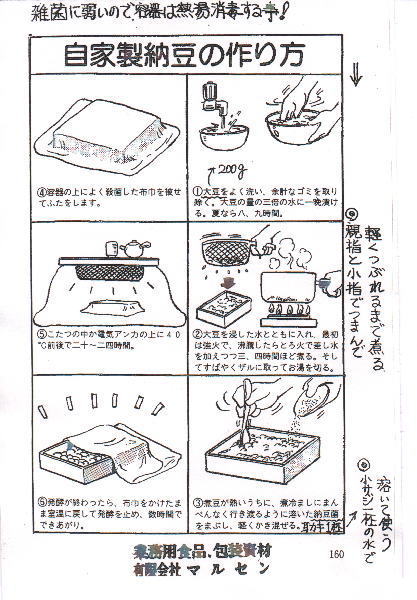 | 大豆 30KG用 ¥714,(税込み) ★200gの大豆→耳かき一杯の菌でOK!! お弁当箱やタッパで、一晩で新鮮な納豆が出来ます・・・ 黒豆納豆、青畑納豆も出来ます・・・作りたてはおいしいですよ・・・ |