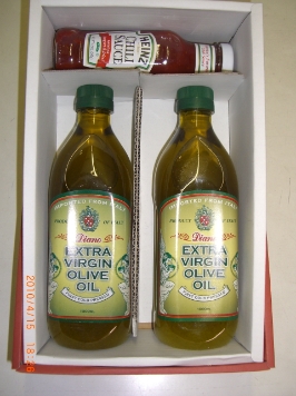 | エキストラバージンオリーブオイルセット 《オリーブオイル1LX2本、チリソース340gX1本》 ¥3100、(税込み)