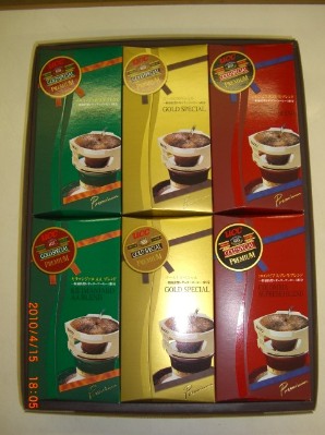 | UCC・SAR−20GSB カップオンタイプ ↓メ¥2160→30%OFF¥1512(税込み) (ゴールドスペシャル・キリマンAA・コロンビアスプレモ →各5杯分入り) ![]() |