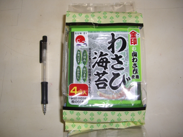 サンエイ「わさび海苔」・・・味付きです。・・・ピリット香りの大人の味!(金印の山わさび使用)