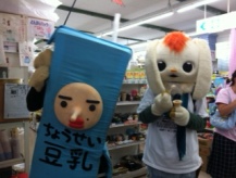 豆乳君とロップ君が遊びに来ました 豆乳君の顔が磁石になっていてはずれるんです! 「和」です