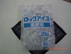 貫目氷(3.75kg) ¥528.− 板氷(1.7kg) ¥264.− ロックアイス(2kg) ¥287.−