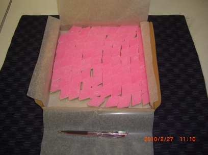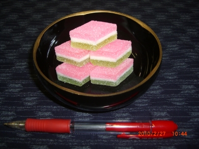 季節の要予約商品⇒まほろば「ひしもち」・・(砂糖・水飴・寒天・卵白) 一箱80個入り ¥3050,−(要、約一週間位)
