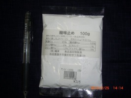 【 酸味止めの素 】 …《食品添加物》・・・炭酸Ca(85%).重炭酸Na(5,5%).グルタミン酸Na(5%).カハク酸Na(2%).