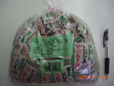 【マルコメ;プチしじみ風味みそ汁】・・・シジミ味は肝臓にいいかも・・・・? 50食入り ¥380,− ・・・なんとなく和食っていう感じ・・・・ ☆おためしパック 10食入り ¥126,−もあります。 (有)マルセン