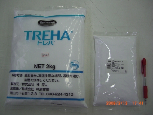 エビやキノコ、海藻などに含まれる糖質で、砂糖の45%の糖分です。 (メーカー参考小売り価格:650g⇒¥1260,−) 2kg ¥1250,−(お試しパック)500g¥398,− 今や、健康にはトレハロースの時代です!!