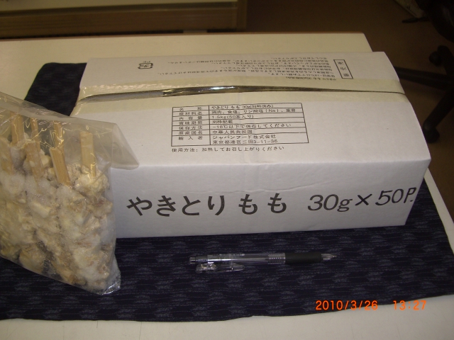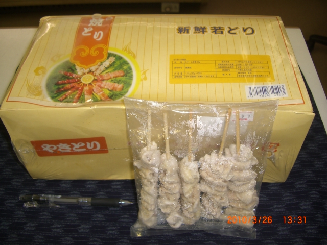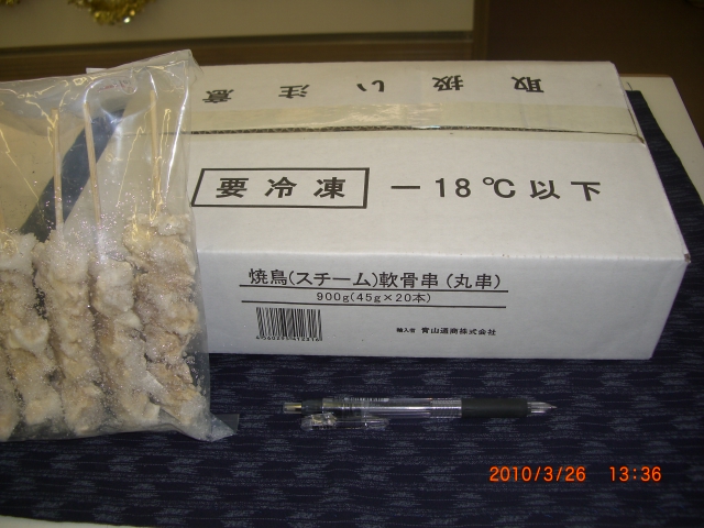 もも串27gX50本入り¥1783、−鶏胸皮串30gX50本入り¥2317,−